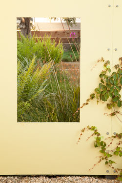 This garden in Pacific Palisades makes maximum use of a small lot to make the house itself live larger. The clients, a couple who downsized within their coastal neighborhood, swapped a big landscape with a pool for a corner lot awash in lawn and concrete. Their goals for the new place included a fully indoor-outdoor life, with patio hang-outs adjoining downstairs rooms and large garden views from the inside. They wanted colorful, easy-care plants with low water needs that would thrive near the beach. Architect Dane Twichell opened up the interiors of the1940s house and brought in light and air with French doors. I designed corresponding courtyards — a tree-shaded lounge off the living room, a dining patio off the kitchen — and enclosed them with hedges and fences clad in vines. Along a sunny walk I planted drought-tolerant, winter-blooming succulents, and for the breezy coast-facing corner, I chose Mediterranean climate flora from around the world - almost as water-wise, but more forgiving of wind and mist. Strategically placed trees and partitions screen out neighbors, and a pint-sized meadow creates an overlook with a peek of the Pacific. Nearby, where a thirsty lawn once grew, a ping-pong court draws friends and family out for games.